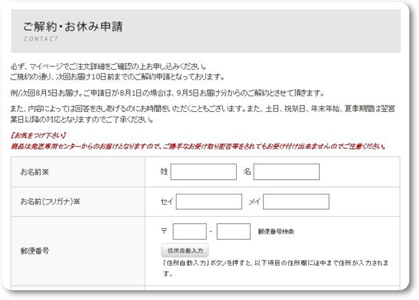 1. 解約の手続きは次回商品お届け日の10日前まで